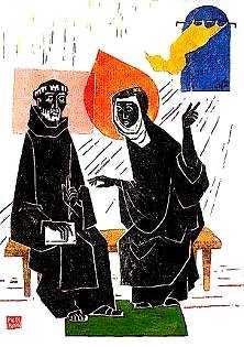 As a young man, Benedict traveled to Rome to study, but became disgusted with the habits of life he found there. The Roman Empire was collapsing, and its values and institutions were in chaos. Eventually Benedict retreated to a cave, and lived alone with God for three years. Later, he founded several monasteries, and compiled a rule of life for monks we now call the Rule of St. Benedict, which he wrote based on his experience governing small groups of monastics, to provide the underpinning of spiritual growth for monks after his death. The Rule is based on a deep understanding of both Gospel values and the human condition. It sets out a code of behavior to help mold monastics into the selfless followers of Christ they aspire to be.