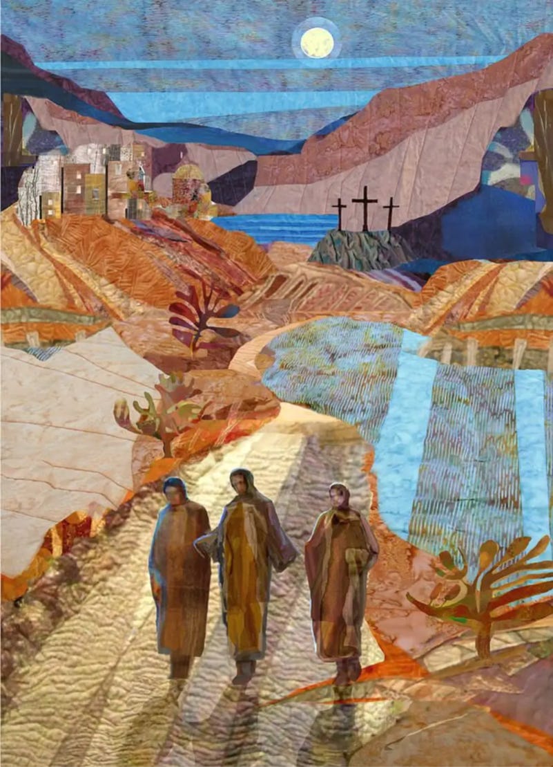The story tells us that Jesus is saying—I’m with you in your daily life, when you’re walking down the road, sharing a meal. Jesus is saying—in your journey, in the strangers you meet, in everyday meals, I am present. Daily life is where you encounter me. The reality that I have conquered death means that ultimately the world is holy and daily life is where you see me.